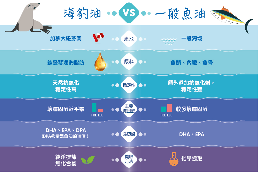 鱼油同海豹油嘅功效虽然相似,但成份同质量大相径庭。小编认为进食滋补品都系想有成效,可以保持健康,咁当然系拣款功效好啲嘅。鱼油虽然都可以维持脑部同心血管健康,但系海豹油所提供嘅营养较多,而且易啲畀人体吸收,效果亦比鱼油更为显着,所以海豹油喺近年愈嚟愈受欢迎。